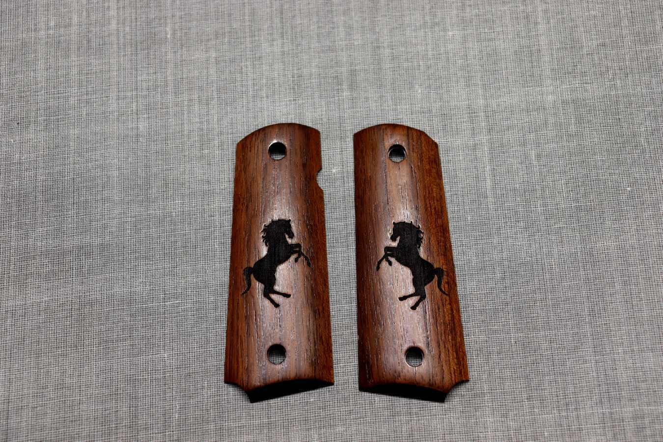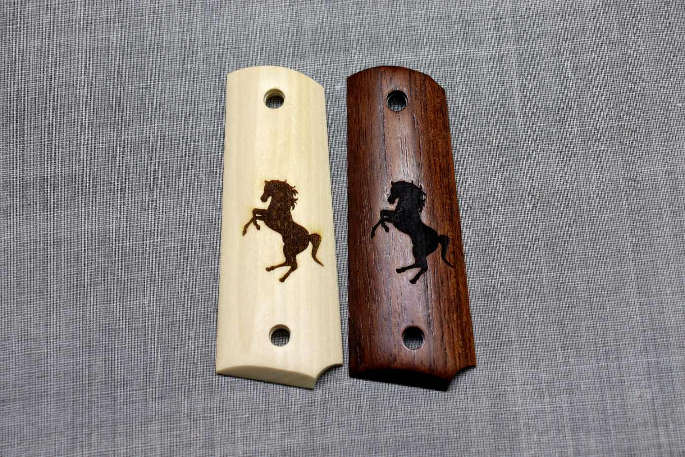 ウォールナット材に馬のレーザーマーク