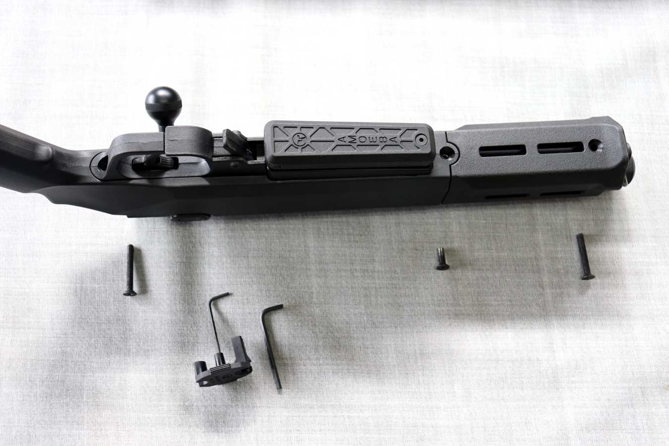 抜けたら、逆の手順で木製ストックを組み込んでいきます。