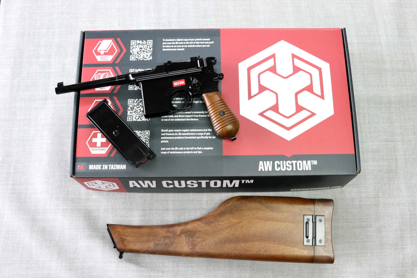 ←こちらのWE-Tech製M712(AW社JPカスタム) 専用の木製ホルスターストックとなります。